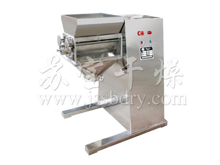 葉面肥造粒機是將混合均勻的軟材,在輾刀的擠壓下,使物料強制通過篩網,并受到刮刀的切割進而得到長度均勻的柱形顆粒。